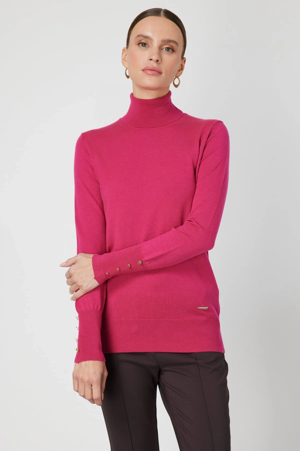 On Fashion Kadın Fuşya Boğazlı Kazak 63503, 2026 kış sezonu için tasarlanan zamansız ve kurtarıcı bir triko üründür. Balıkçı yaka tasarımı, soğuk havalarda boyun bölgesini korurken sade ve şık bir duruş sunar. Regular kalıbı, vücuda rahat oturan dengeli bir kullanım sağlarken orta kalınlıktaki triko kumaşı günlük kullanımda ideal konfor sunar. Astarsız yapısı, hafif ve doğal bir his oluşturur. Klasik siyah rengi sayesinde farklı kombinlerle kolayca uyum sağlar.