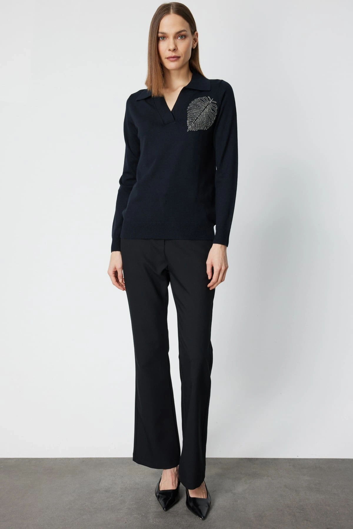 Ürün Adı: On Fashion Kadın Omuz Yaprak Zincirli Siyah Kazak 65334