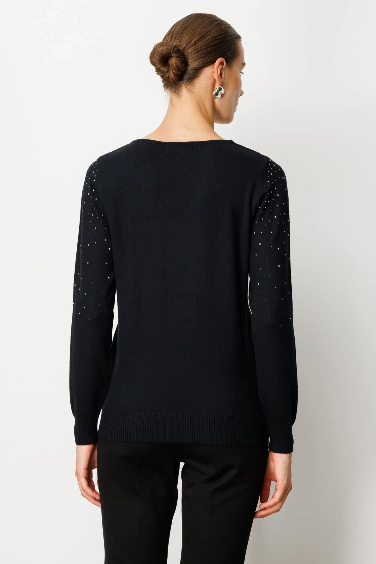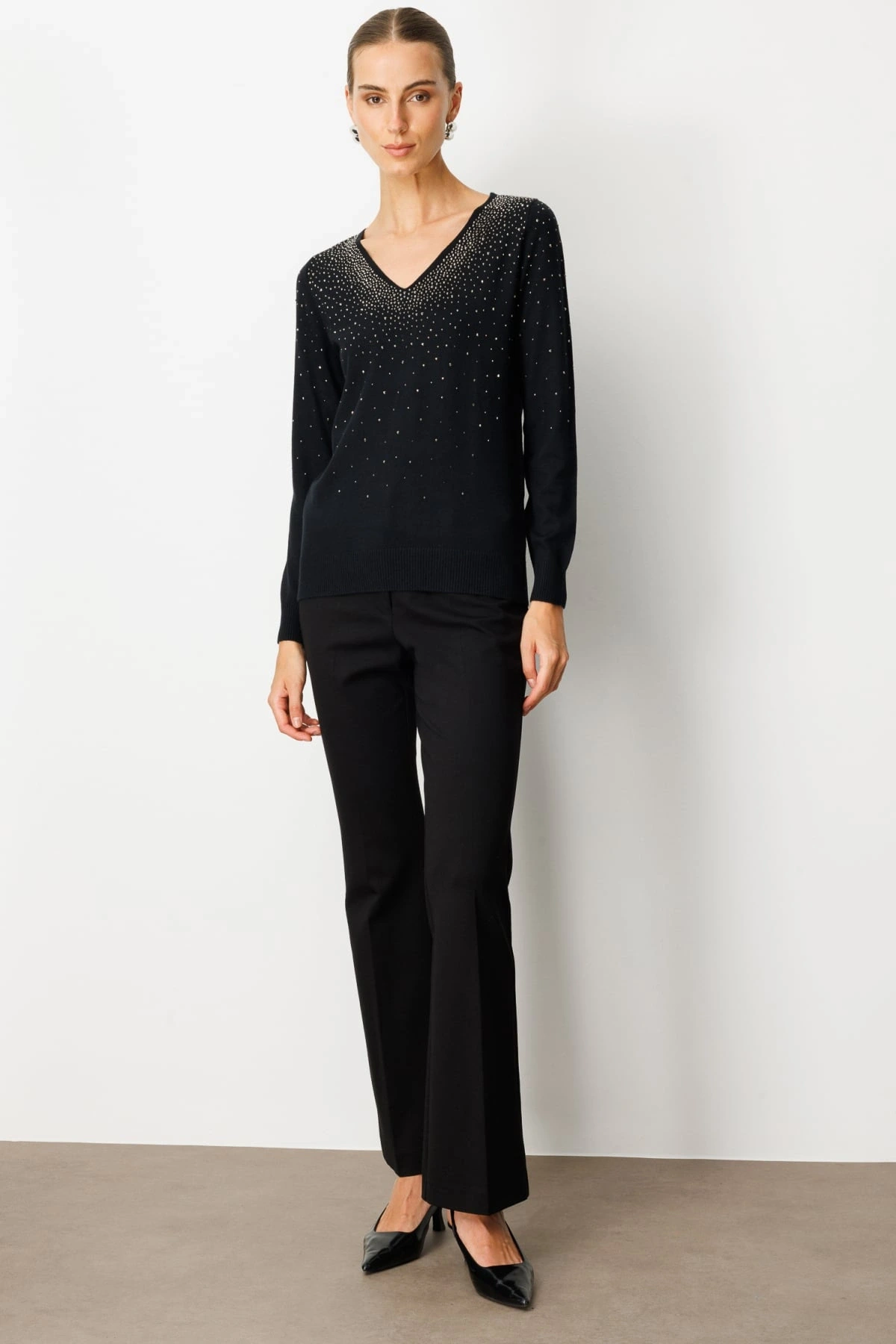 Ürün Adı: On Fashion Kadın V Yaka Önü Taşlı Siyah Kazak 65315