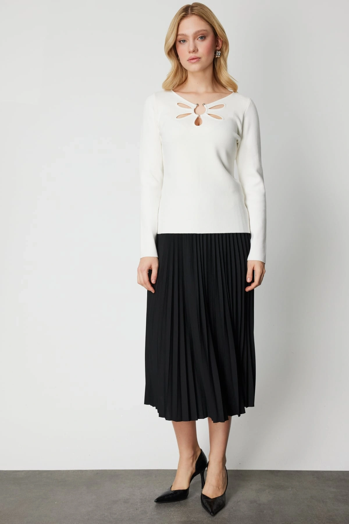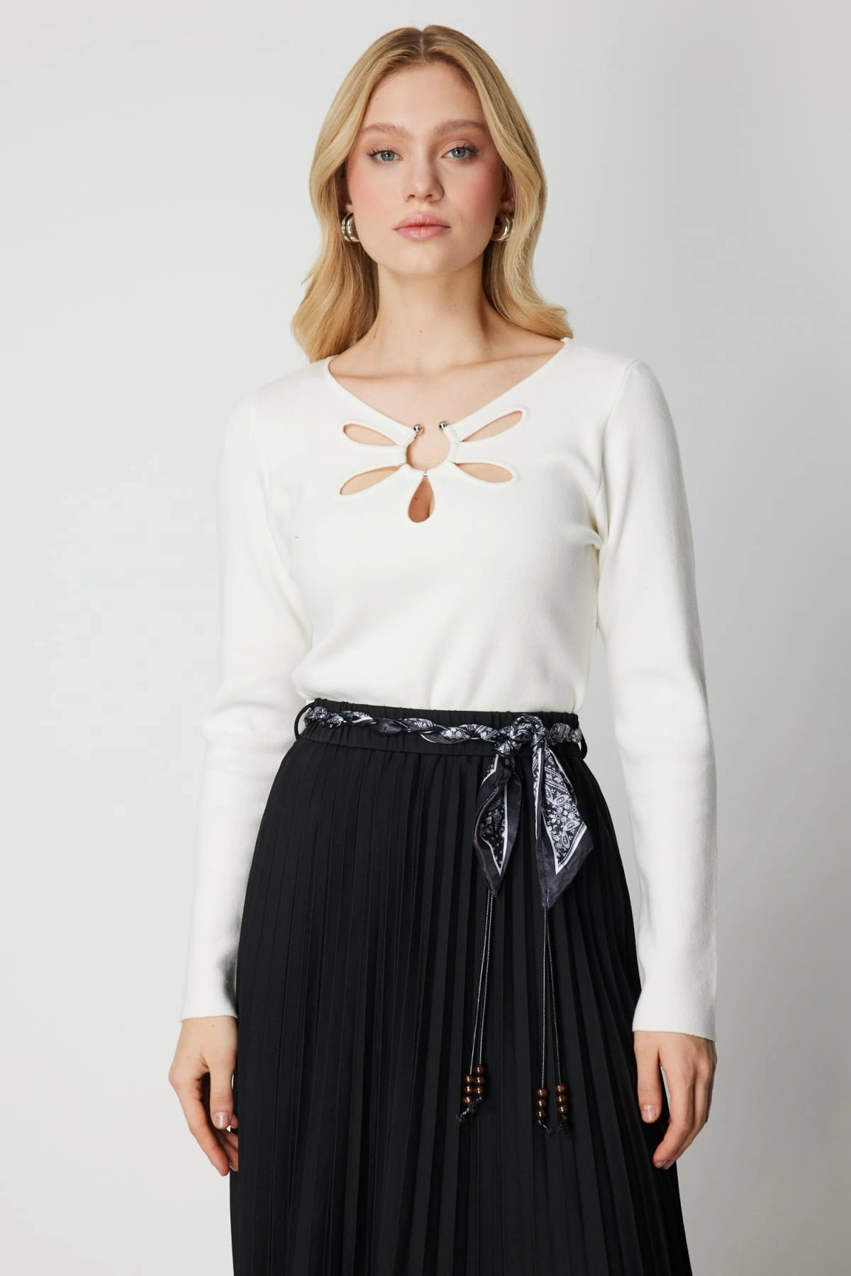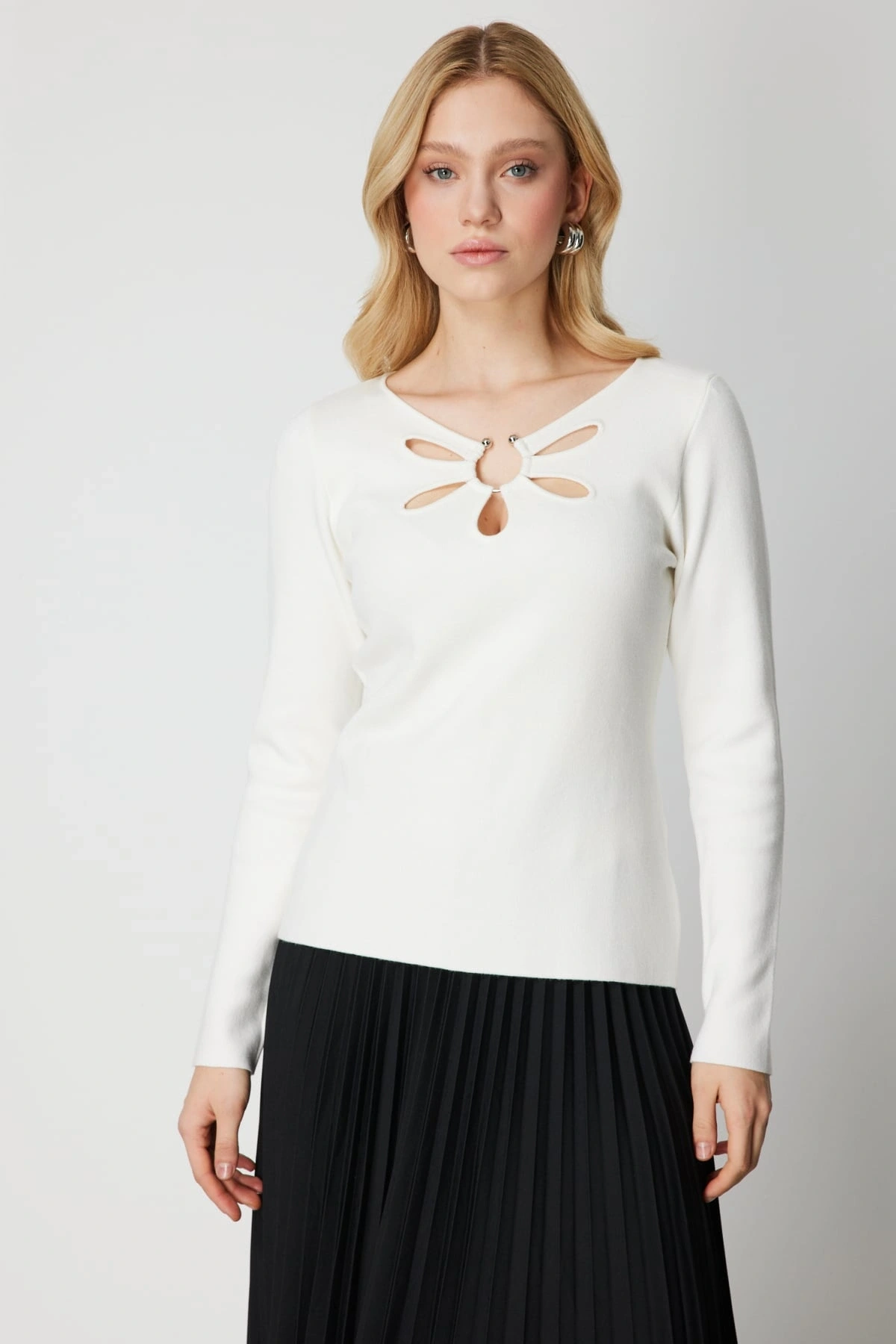 On Fashion Kadın Yakası Pencereli Yaka Aksesuarlı Ekru Kazak, 2026 kış sezonu için tasarlanan şık ve modern bir triko üründür. Pencereli yaka tasarımı ve aksesuar detayı, sade kazak formuna özgün ve dikkat çekici bir stil kazandırır. Regular kalıbı, vücuda rahat oturan dengeli bir duruş sunarken orta kalınlıktaki triko kumaşı soğuk havalarda ideal konfor sağlar. Sıfır yaka formu, modern ve sade bir görünüm oluştururken astarsız yapısı hafif ve doğal bir kullanım deneyimi sunar.