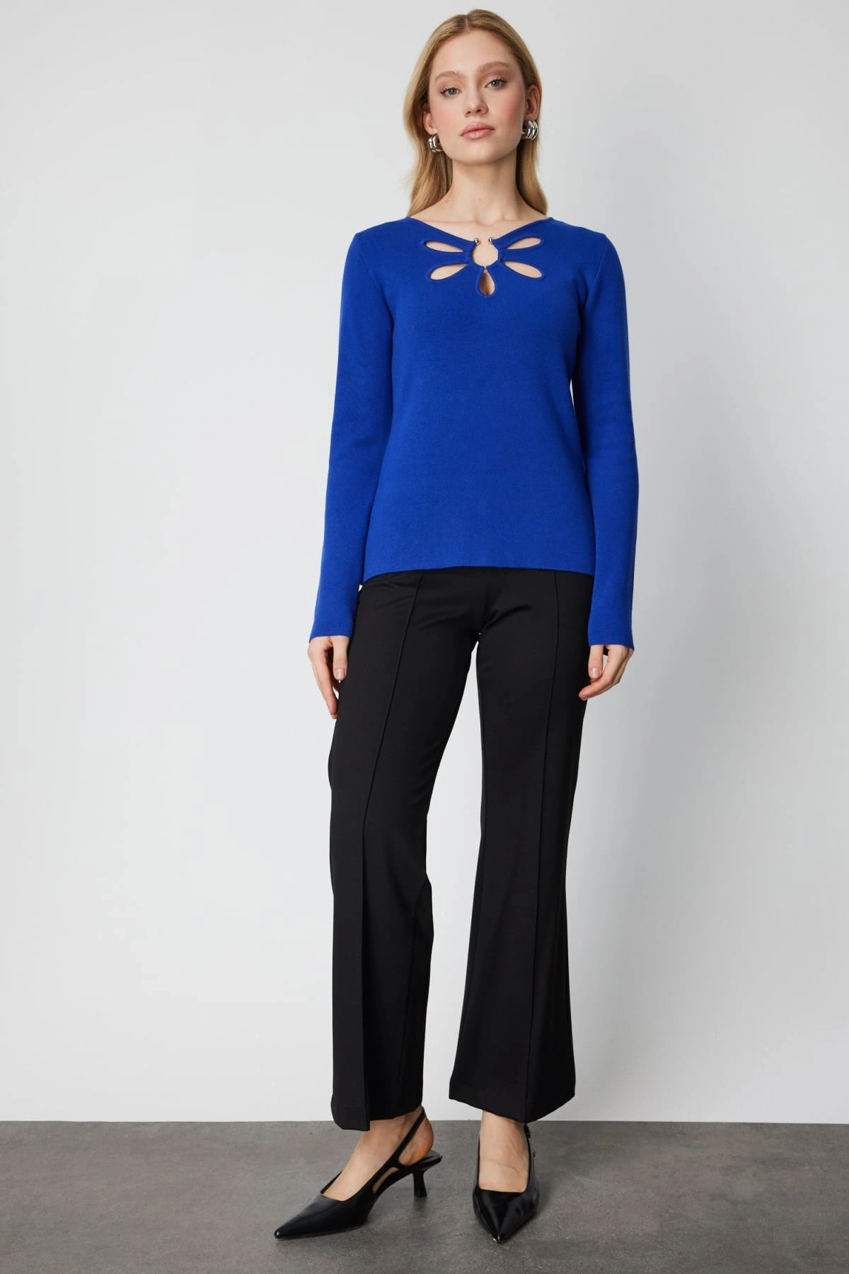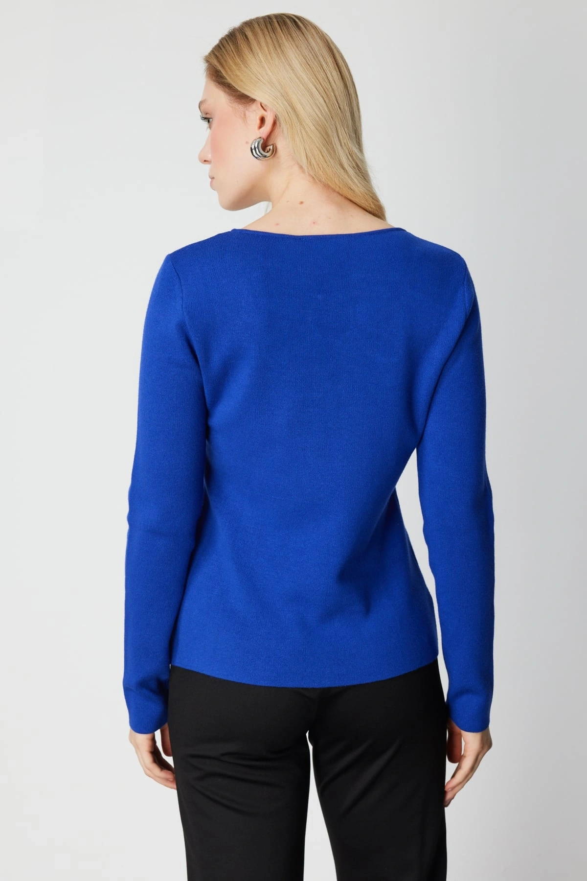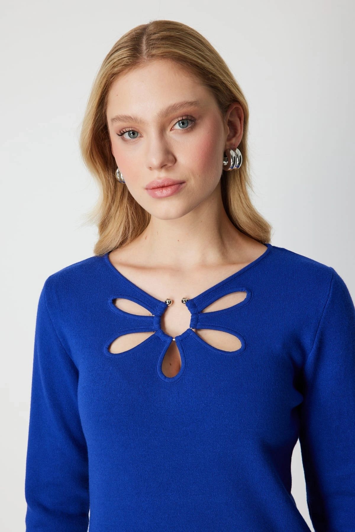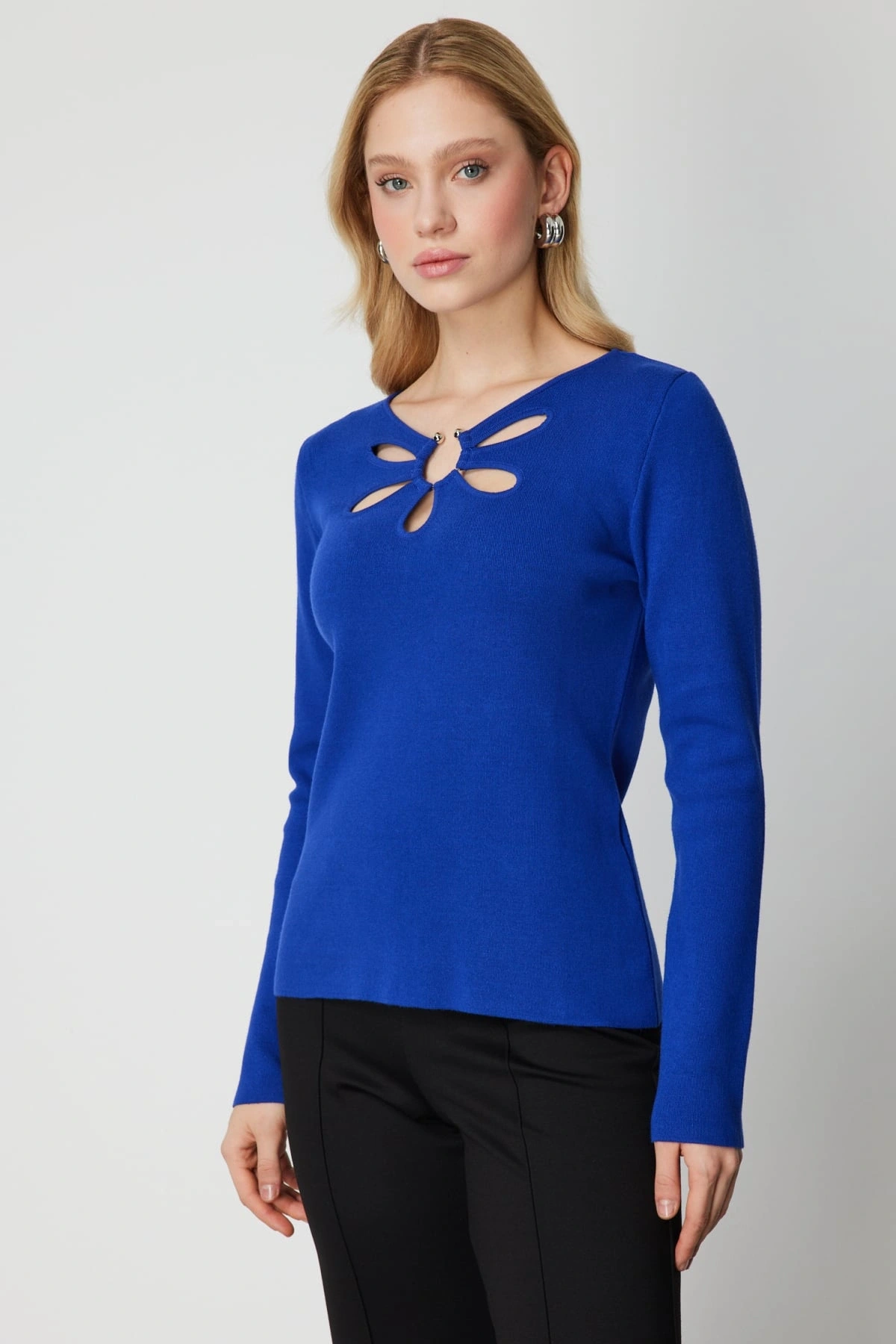 On Fashion Kadın Yakası Pencereli Yaka Aksesuarlı Saks Mavisi Kazak, 2026 kış sezonu için tasarlanan modern ve iddialı bir triko üründür. Pencereli yaka tasarımı ve aksesuar detayı, klasik kazak formuna özgün ve dikkat çekici bir stil kazandırır. Regular kalıbı, vücuda rahat oturan dengeli bir duruş sunarken orta kalınlıktaki triko kumaşı soğuk havalarda ideal konfor sağlar. Sıfır yaka formu, sade ve modern bir görünüm oluştururken astarsız yapısı hafif ve doğal bir kullanım deneyimi sunar.