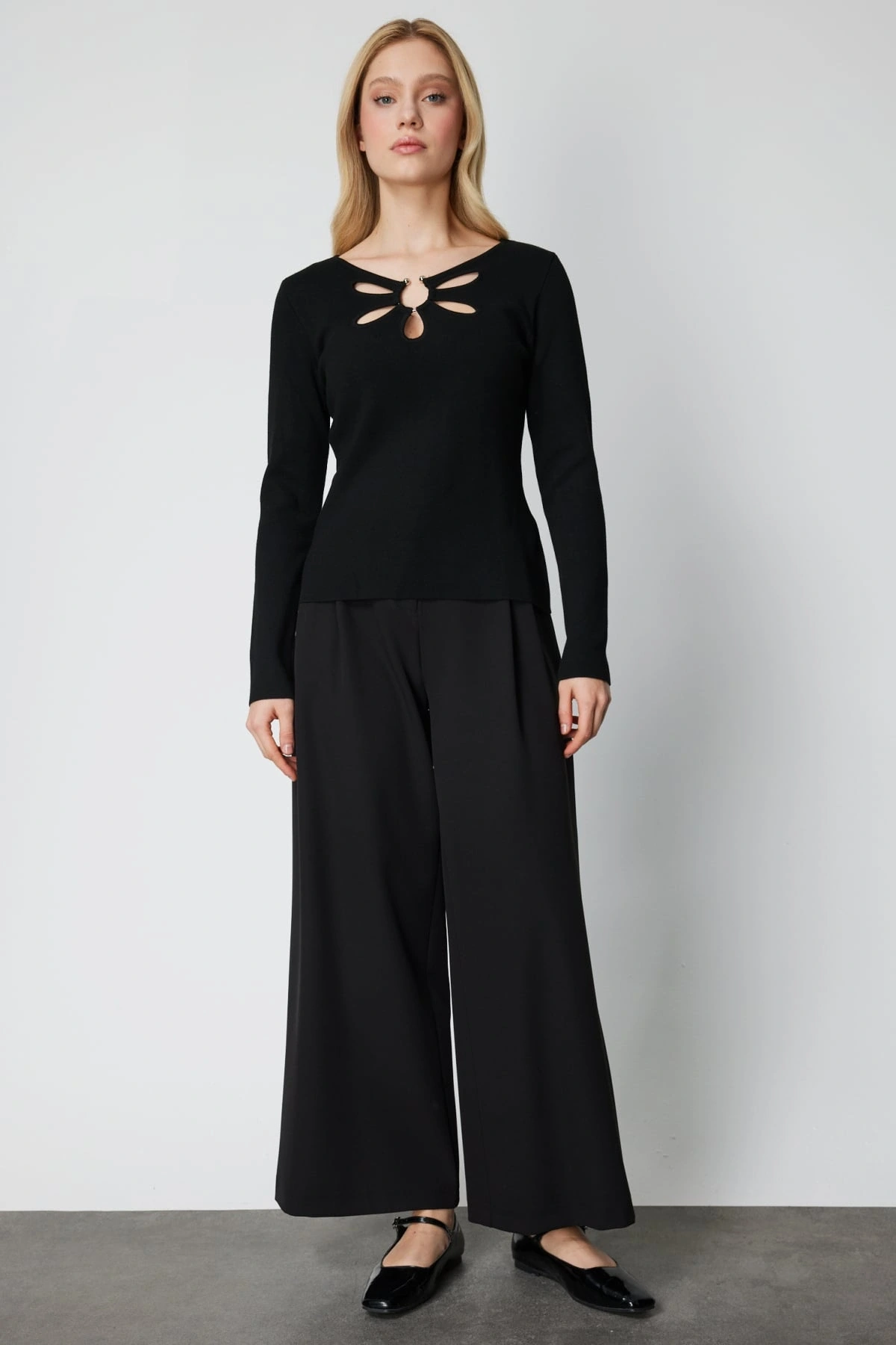 On Fashion Kadın Yakası Pencereli Yaka Aksesuarlı Siyah Kazak, 2026 kış sezonu için tasarlanan modern ve iddialı bir triko üründür. Pencereli yaka tasarımı ve aksesuar detayı, klasik kazak formuna özgün ve dikkat çekici bir stil kazandırır. Regular kalıbı, vücuda rahat oturan dengeli bir duruş sunarken orta kalınlıktaki triko kumaşı soğuk havalarda ideal konfor sağlar. Sıfır yaka formu, sade ve modern bir görünüm oluştururken astarsız yapısı hafif ve doğal bir kullanım deneyimi sunar.