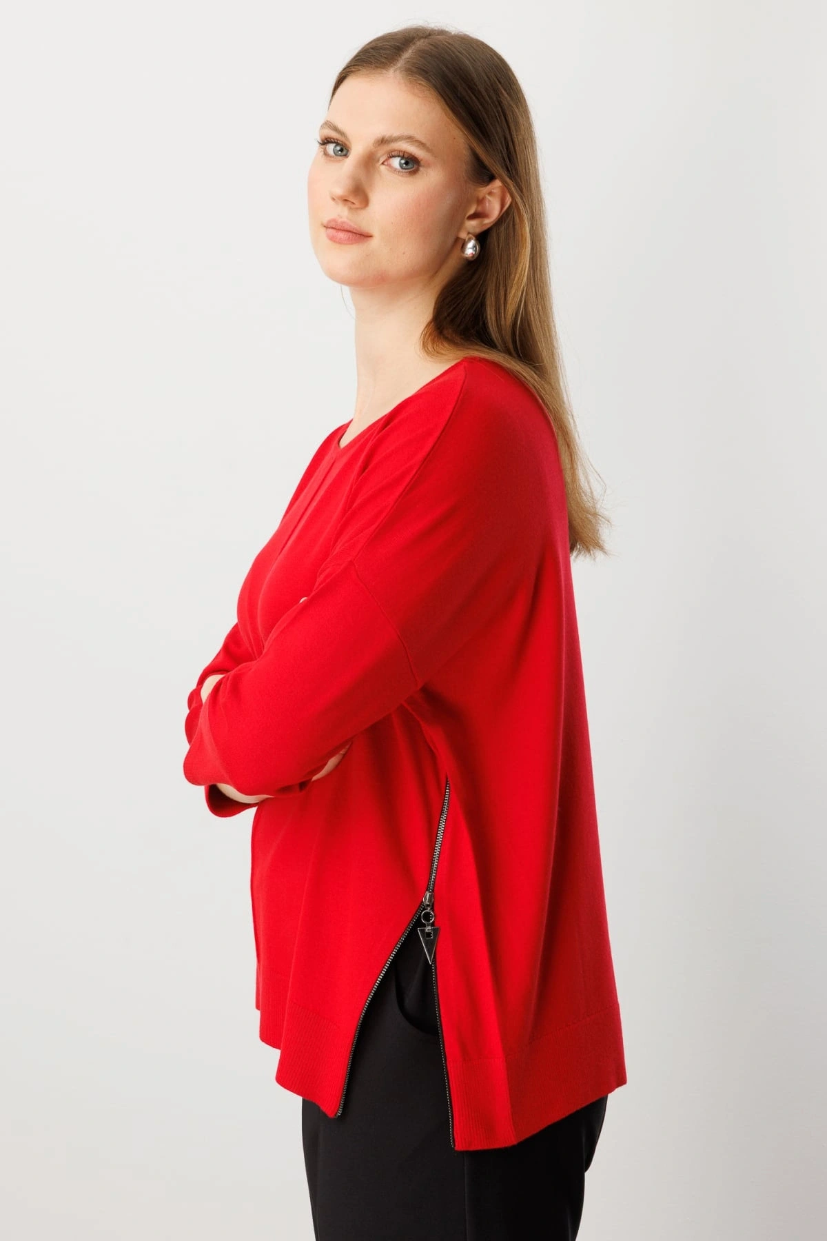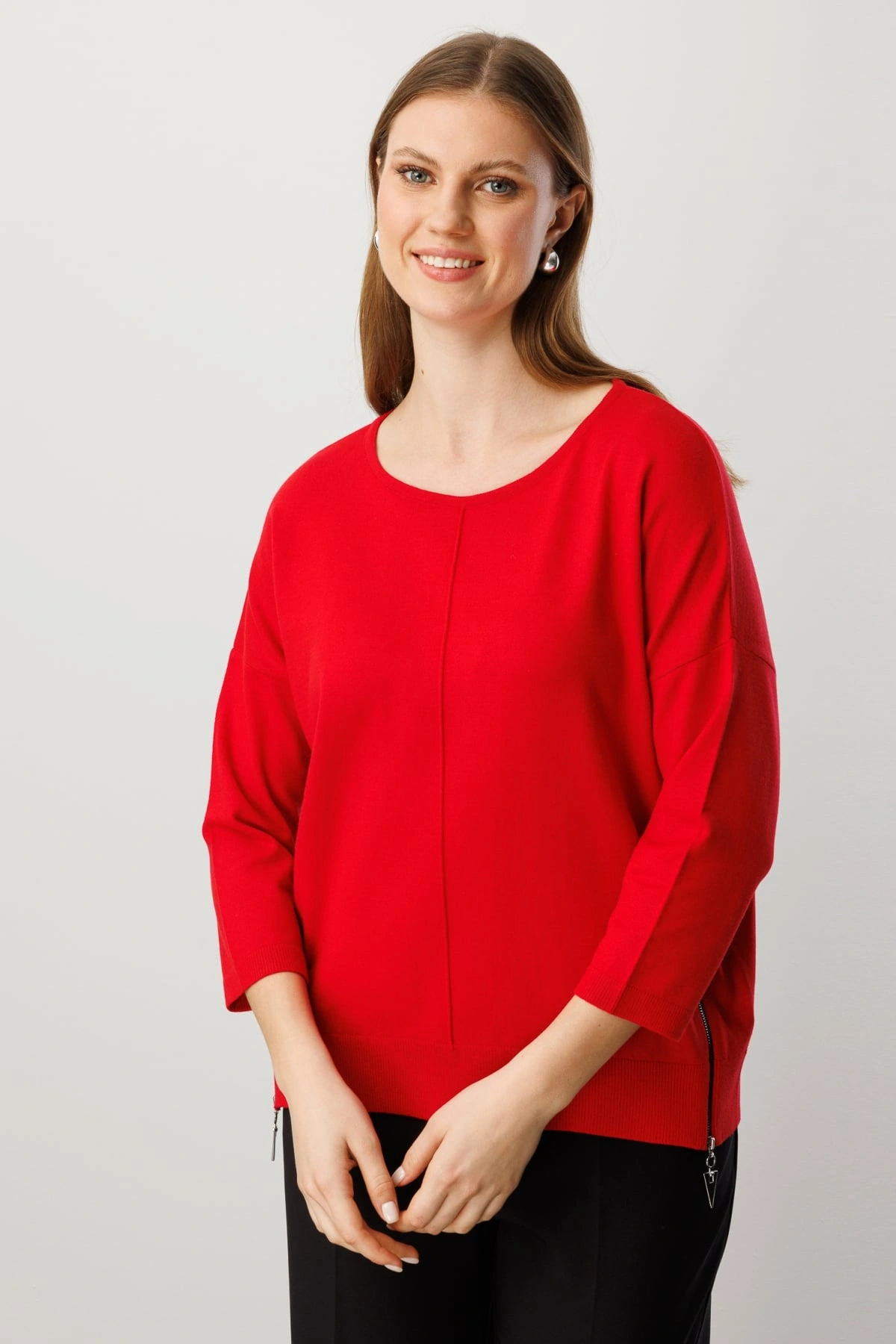 On Fashion Kadın Yanları Fermuarlı Kırmızı Bol Kazak 65389, 2026 kış sezonu için tasarlanan konfor odaklı ve modern bir büyük beden triko üründür. Yan fermuar detayları, bol kesime hareket ve işlevsellik kazandırırken stil vurgusunu güçlendirir. Büyük beden kalıbı, rahat ve özgür bir kullanım sunarken orta kalınlıktaki triko kumaşı serin havalarda ideal konfor sağlar. Sıfır yaka formu, sade ve modern bir görünüm oluşturur. Astarsız yapısı, hafiflik ve doğal bir duruş sunar.