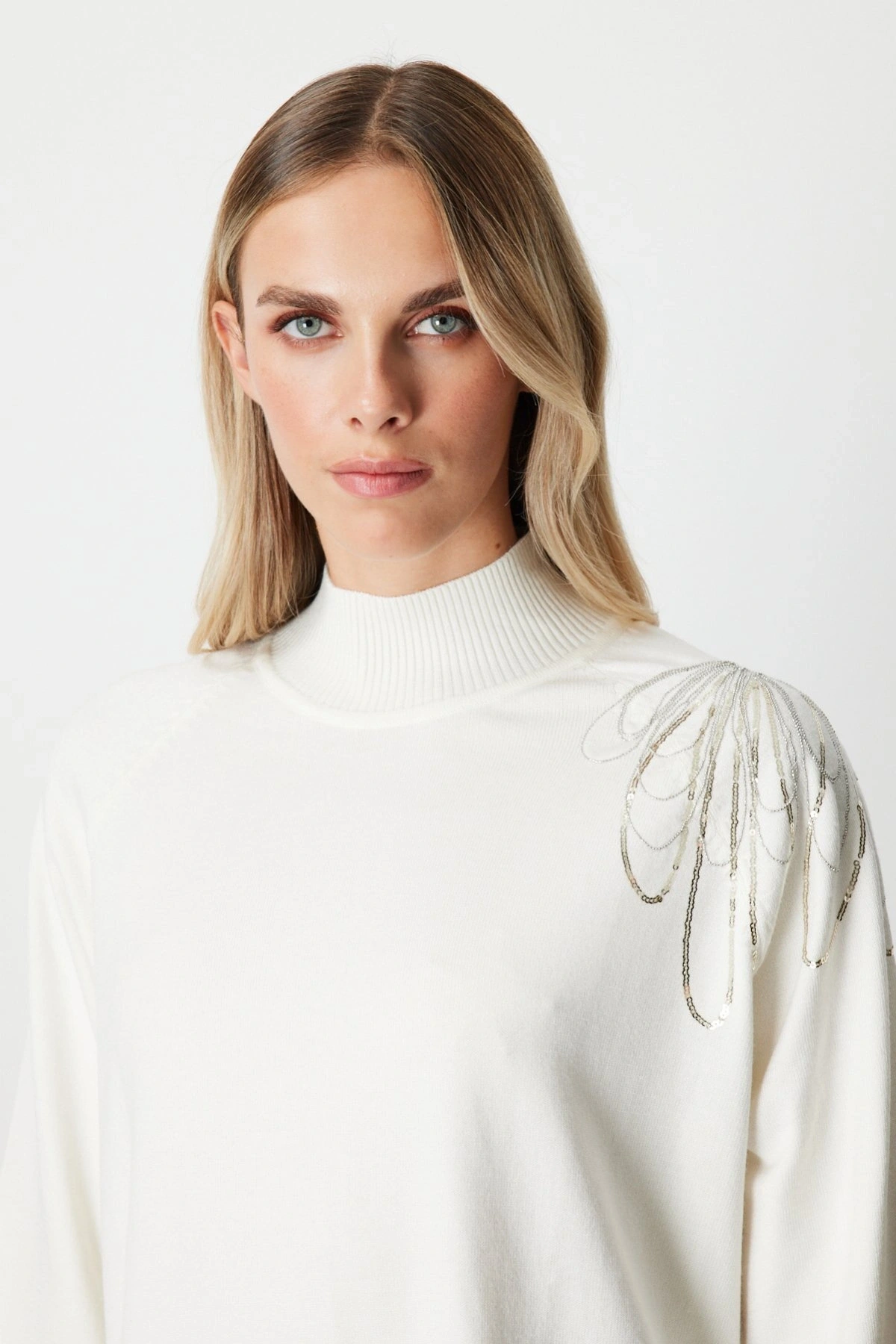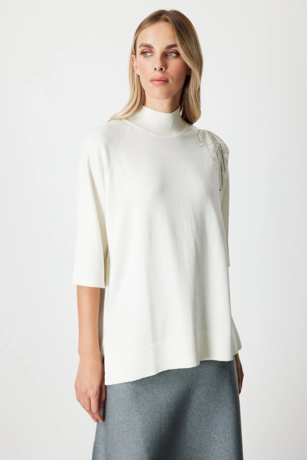 On Fashion Kadın Yarım Kol Tek Omuz Zincirli Ekru Kazak 65381, modern detayları ve güçlü duruşuyla 2026 kış sezonunun öne çıkan triko parçalarından biridir. Tek omuz zincir detayı, sade ekru tasarıma sofistike ve dikkat çekici bir hava kazandırır.