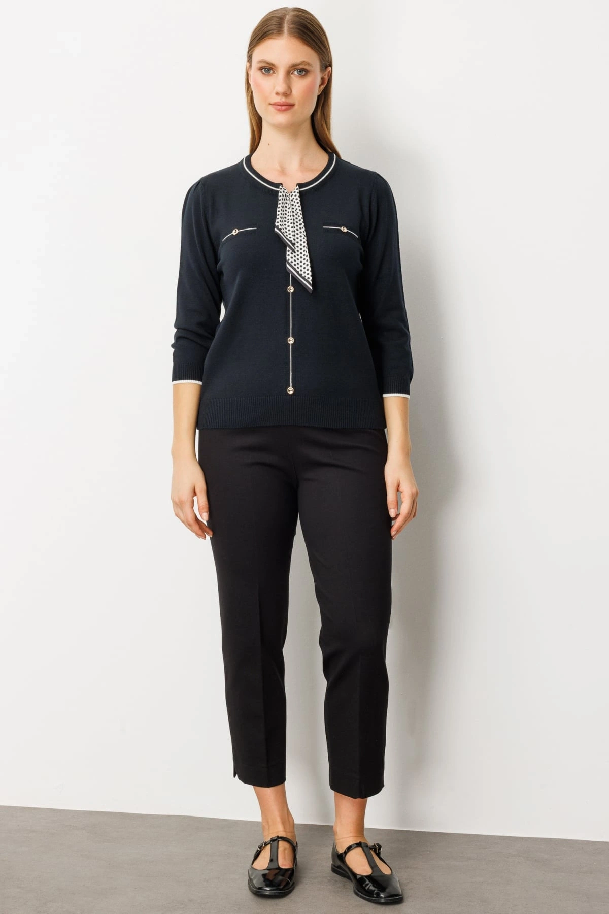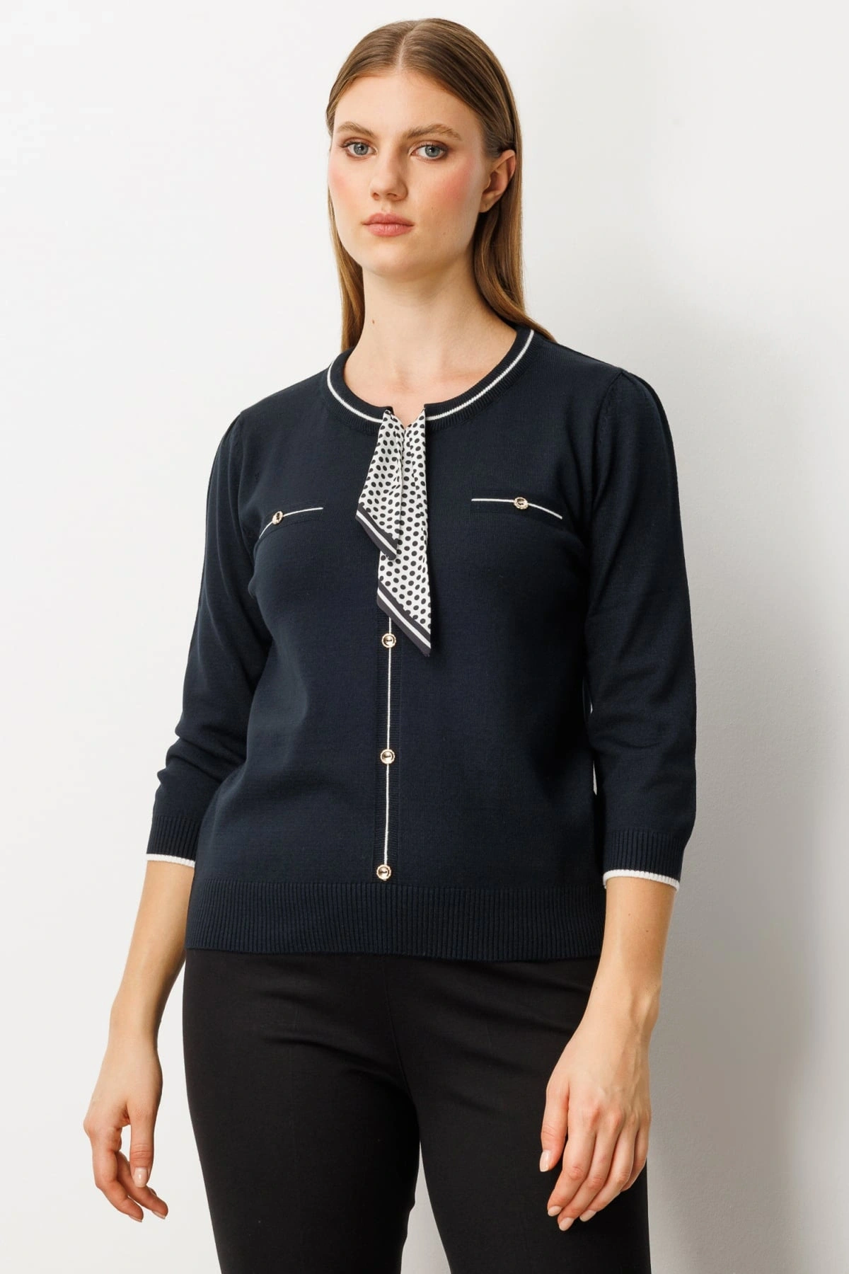 Ürün Adı: On Fashion Kadın Yarım Kol Yakası Fularlı Siyah Triko Kazak 65352