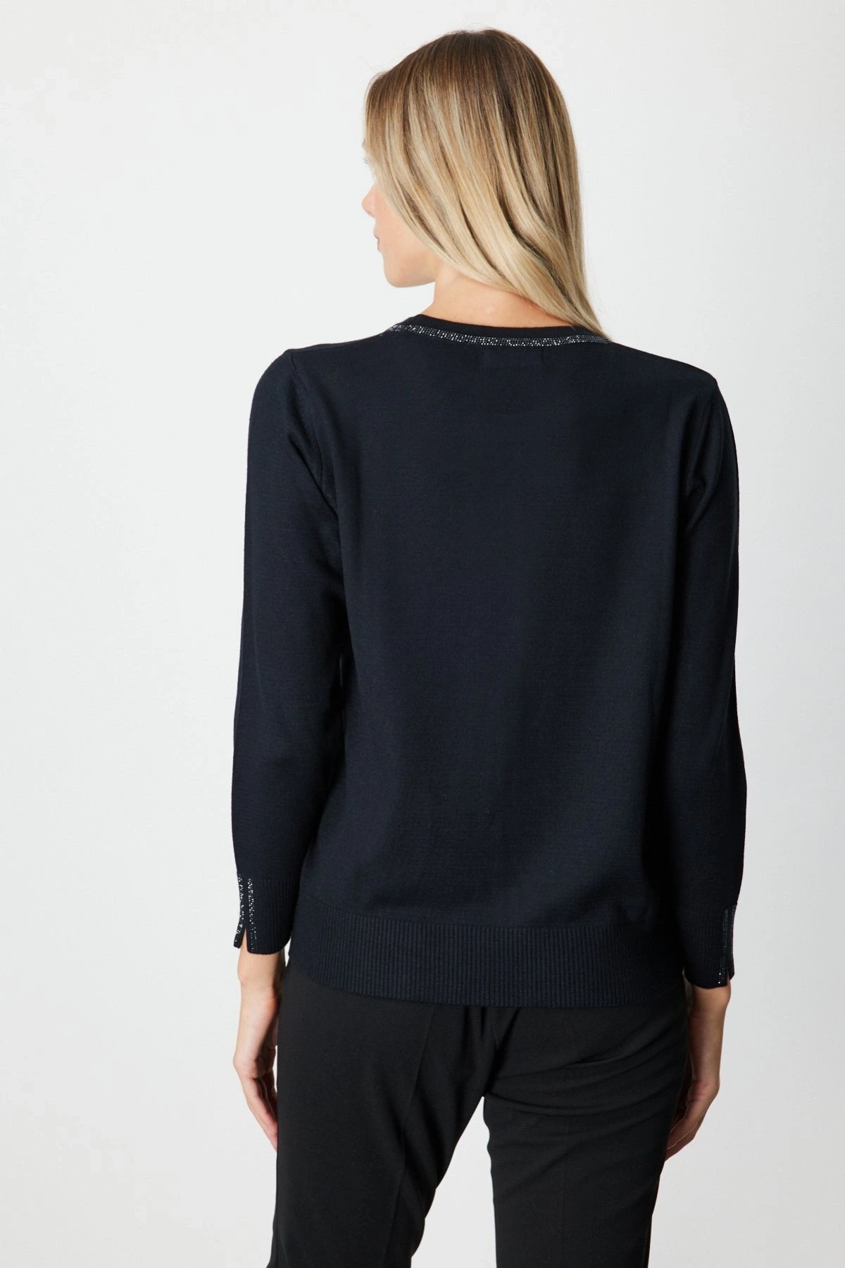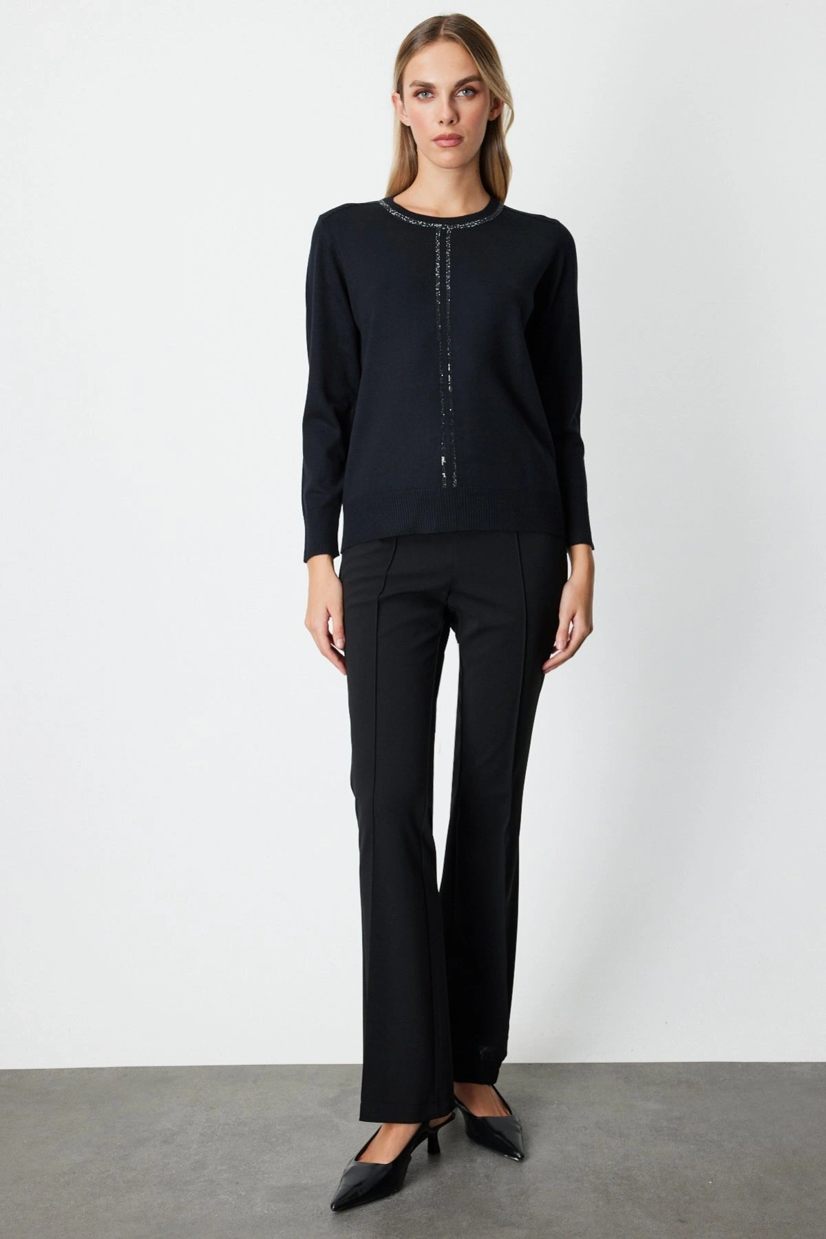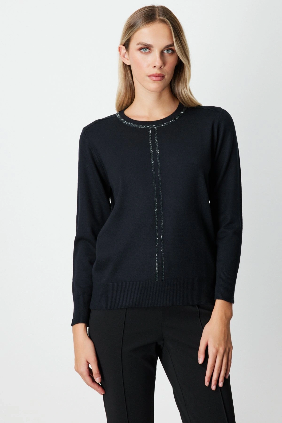 Ürün Adı: On Fashion Kadın Yakası ve Önü Taşlı Siyah Kazak 65397