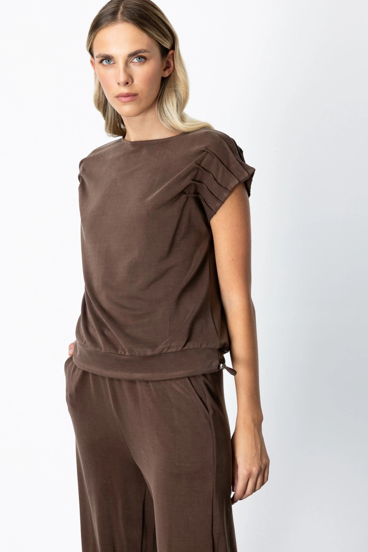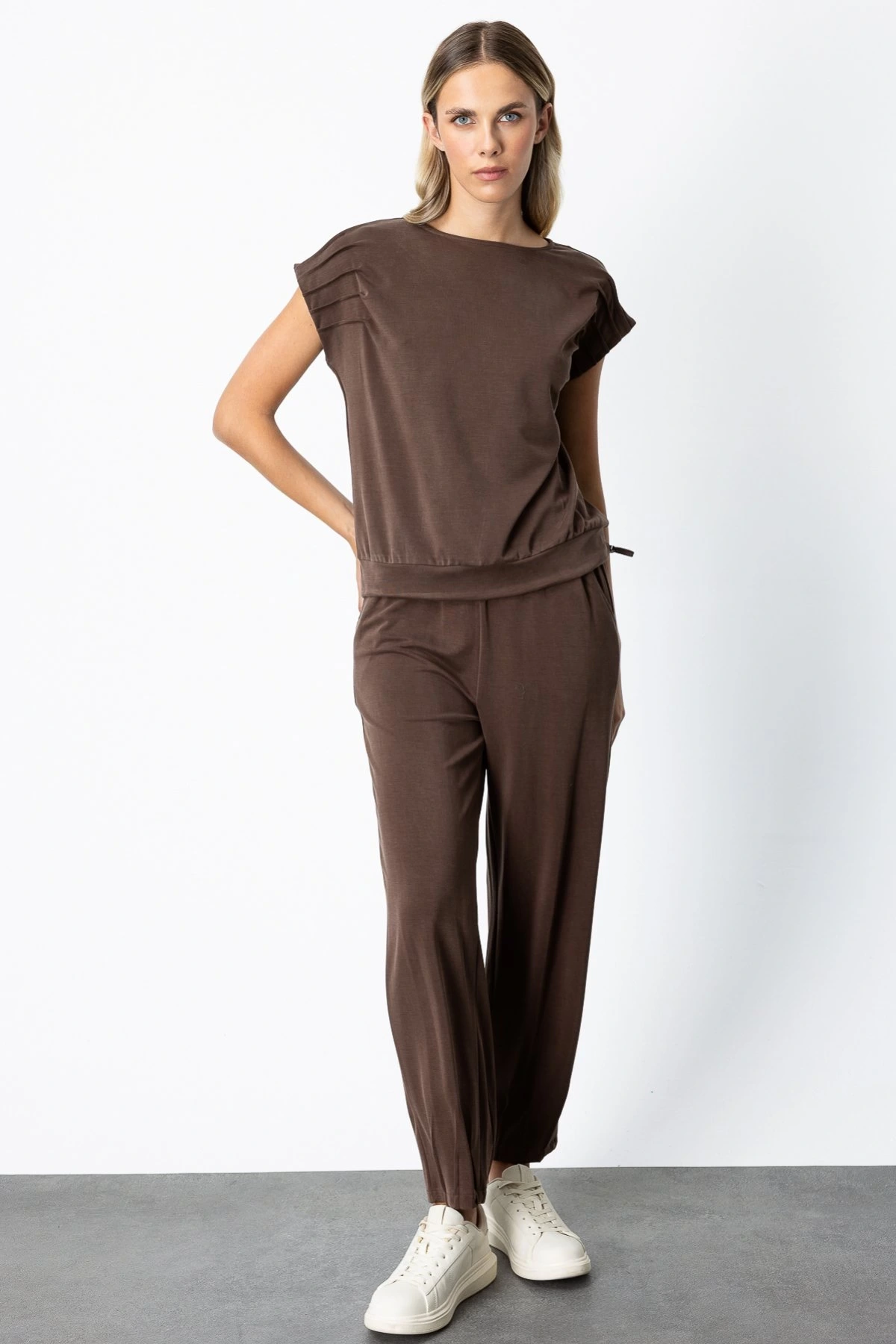 On Fashion Kolları Dikişli Kısa Kol Bluz 66355
