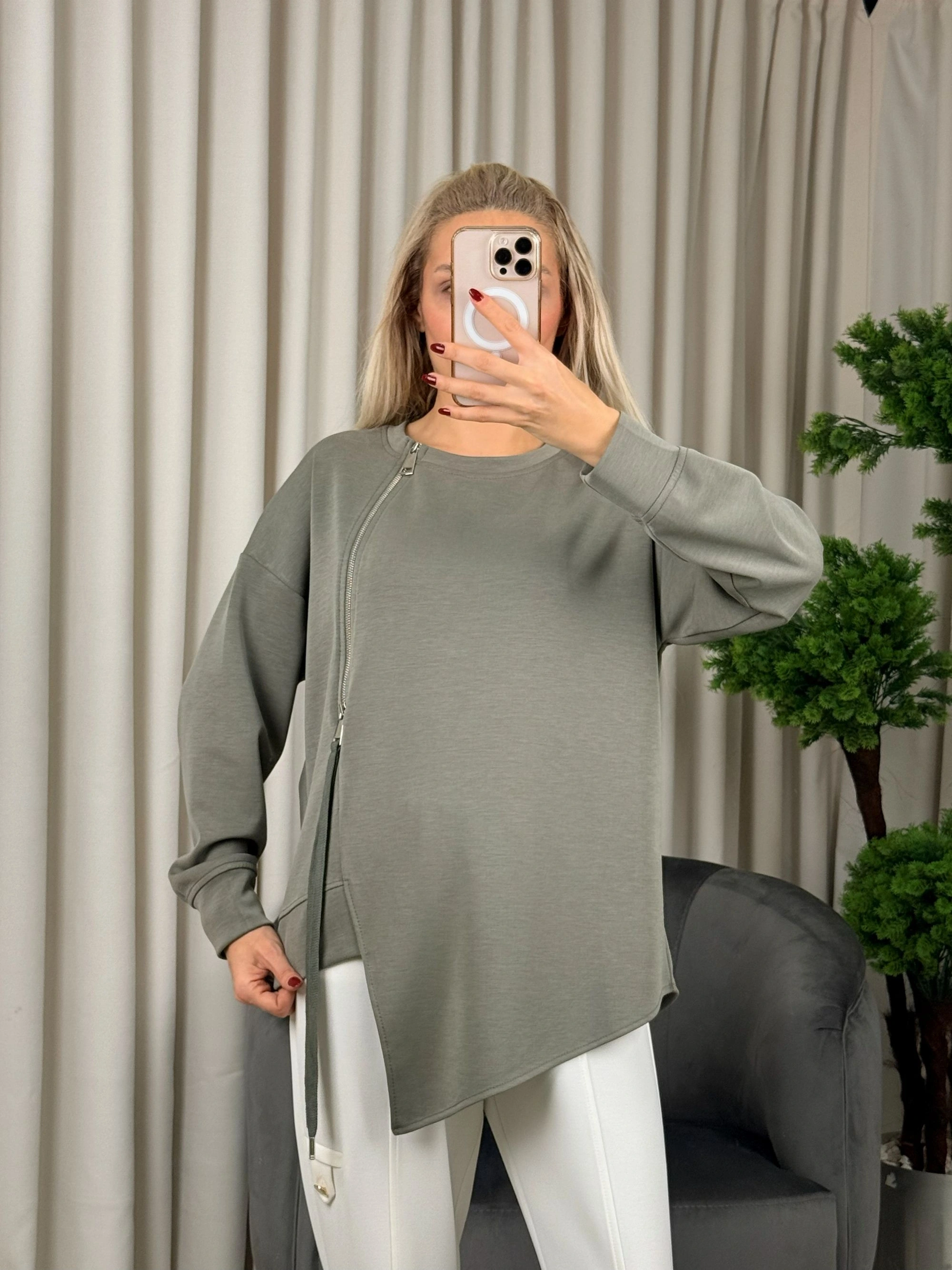 On Fashion Sıfır Yaka Fermuar Detaaylı Tunik 56433