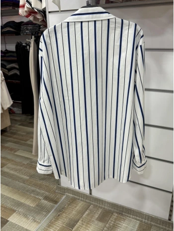 On Fashion Çizgi Detaylı Polo Yaka Kısa Kol Bluz 53300