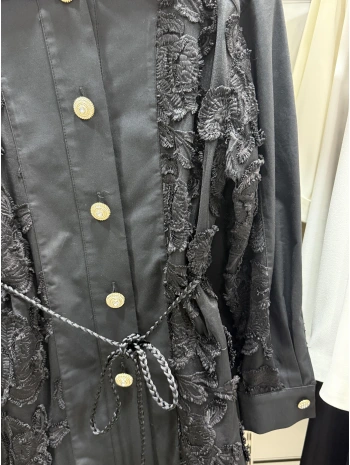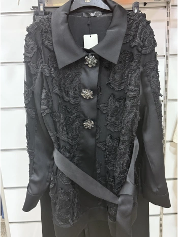 my312 Dantelli Örgü Kemerli Önü İşli İkili Takım 25S1406 - Siyah