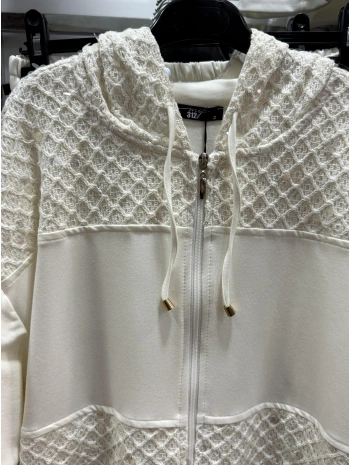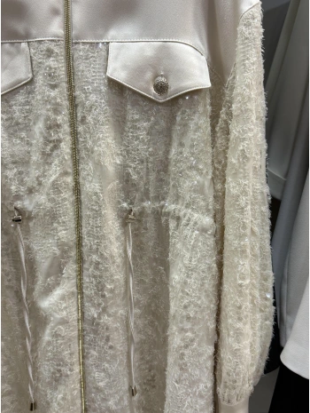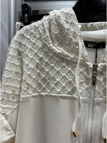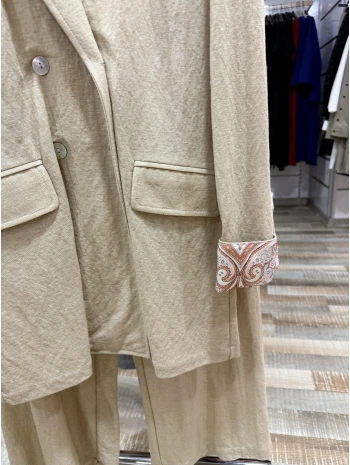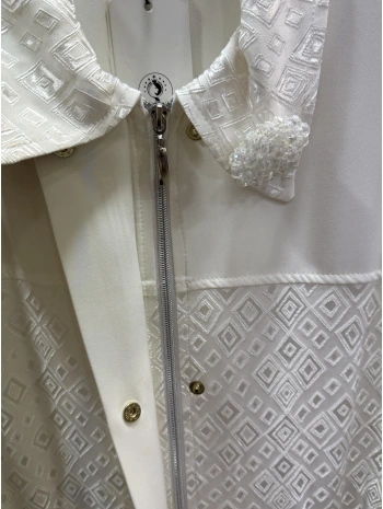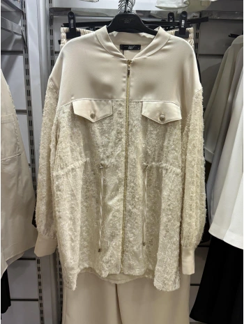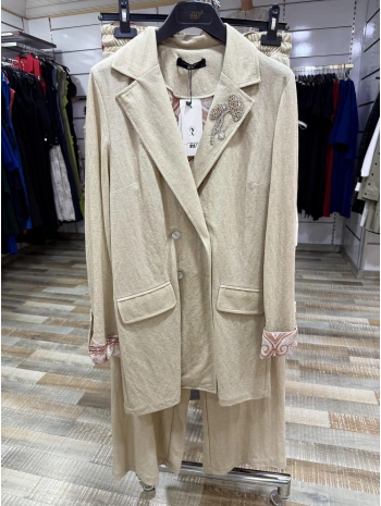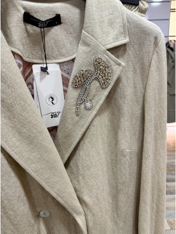 my312 Yakası Broşlu Taşlı Düğmeli Jakarlı Takım 25S1416 Ekru
