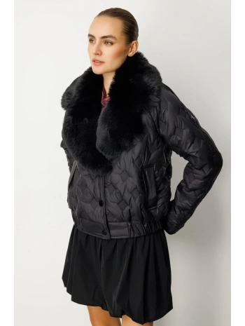 Kısa boylu ve bomber formu, montu spor-şık kombinler için ideal hale getirir. Çift parça görünümlü tasarımı, tek parçada katmanlı bir stil etkisi yaratır.