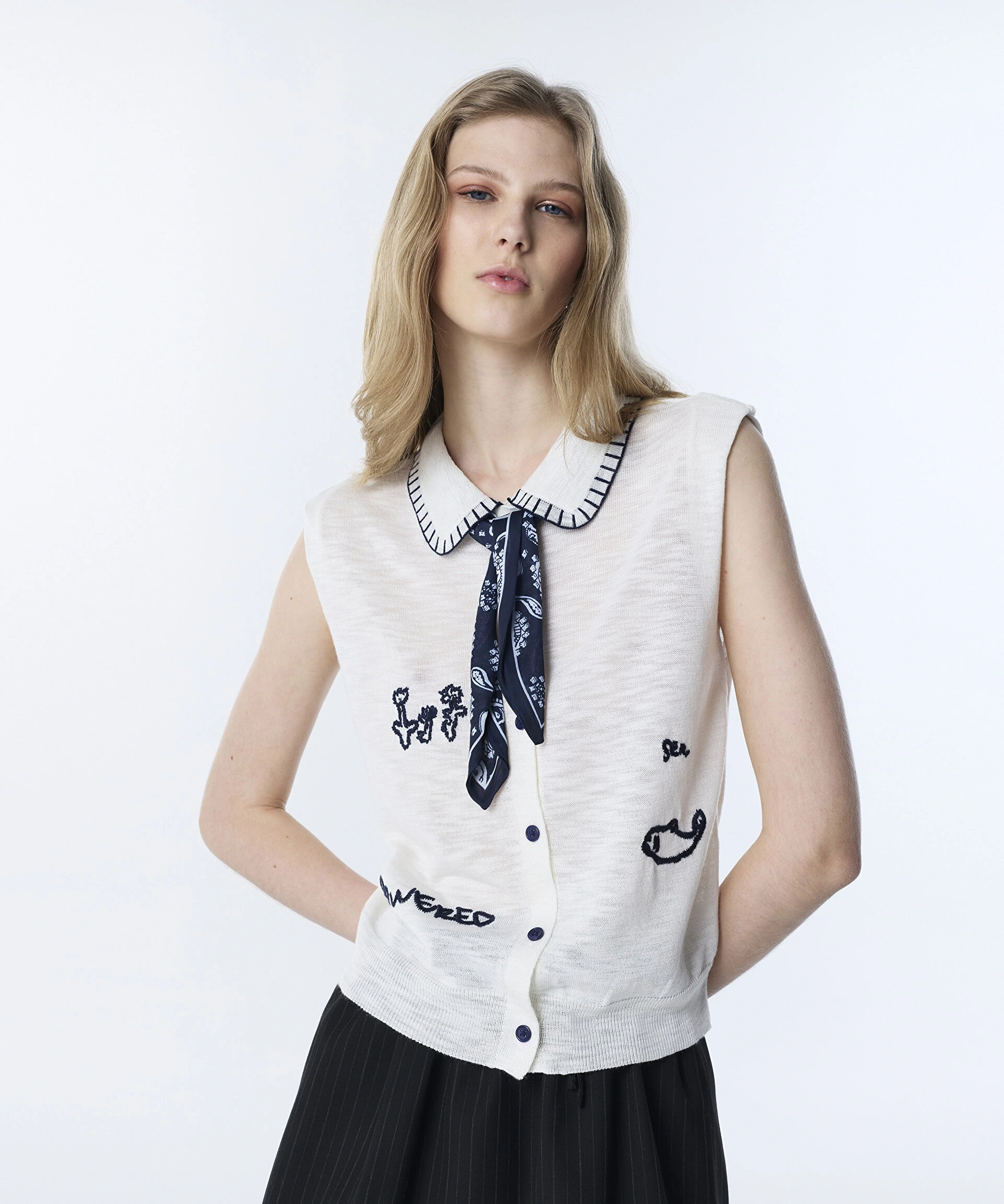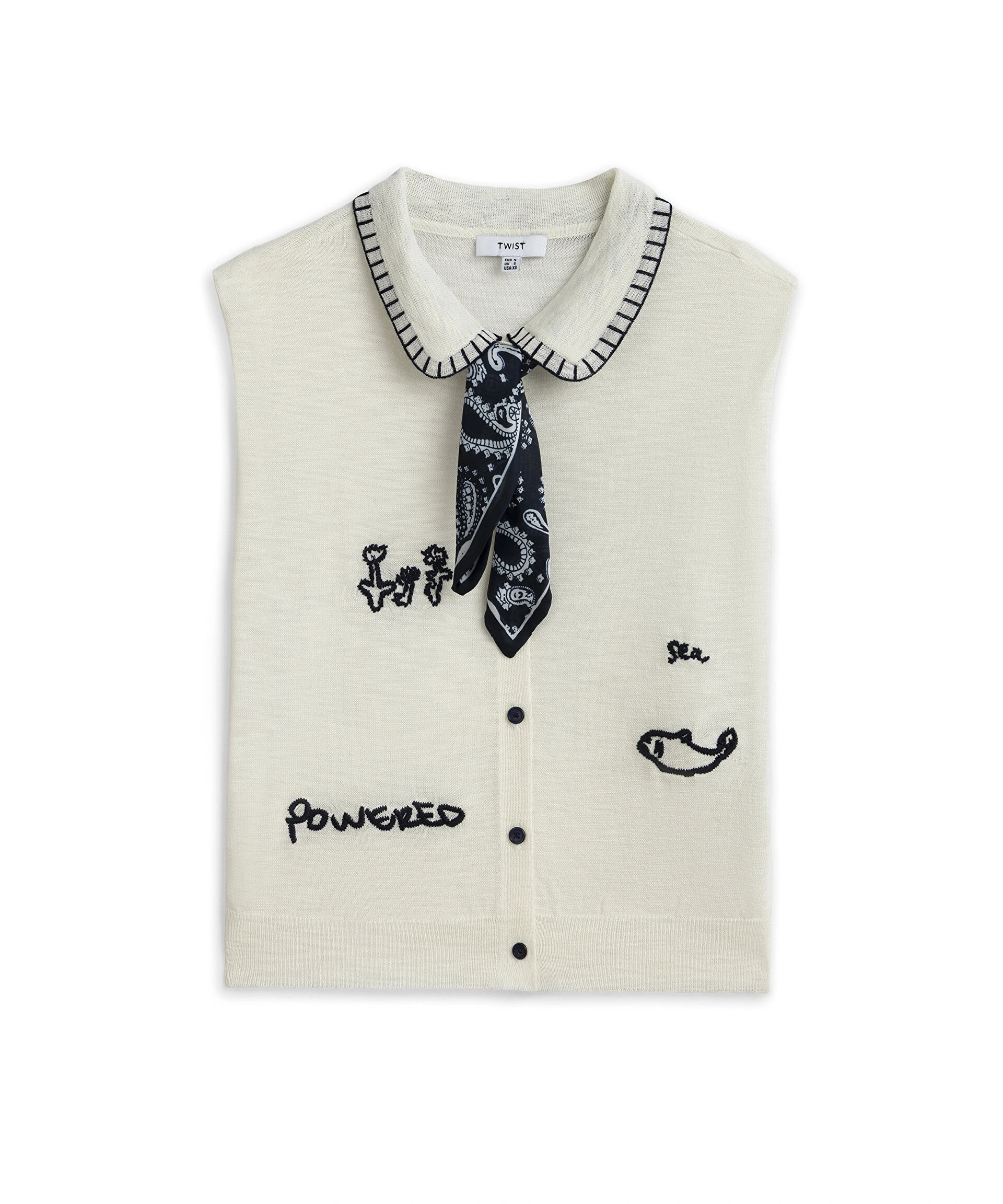 Twist Fular Aksesuarlı ve Nakışlı Triko TS1260050066