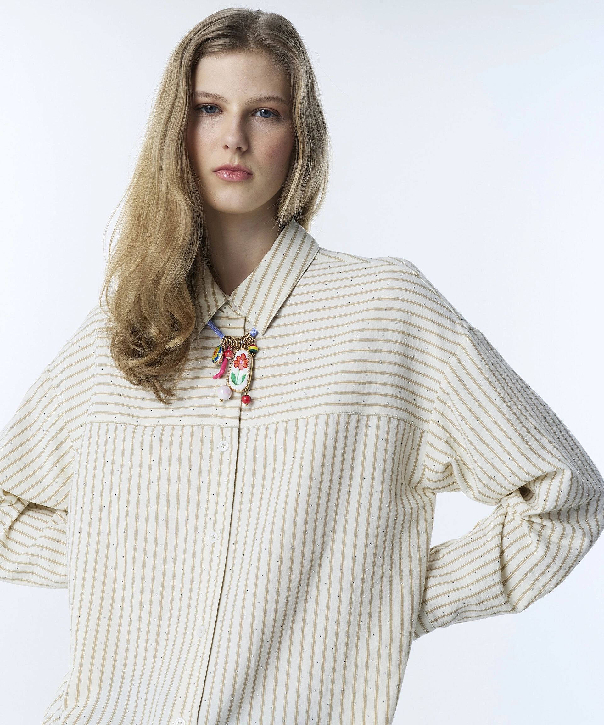 Twist Hotfix Baskılı Çizgi desen Gömlek TS1260025160