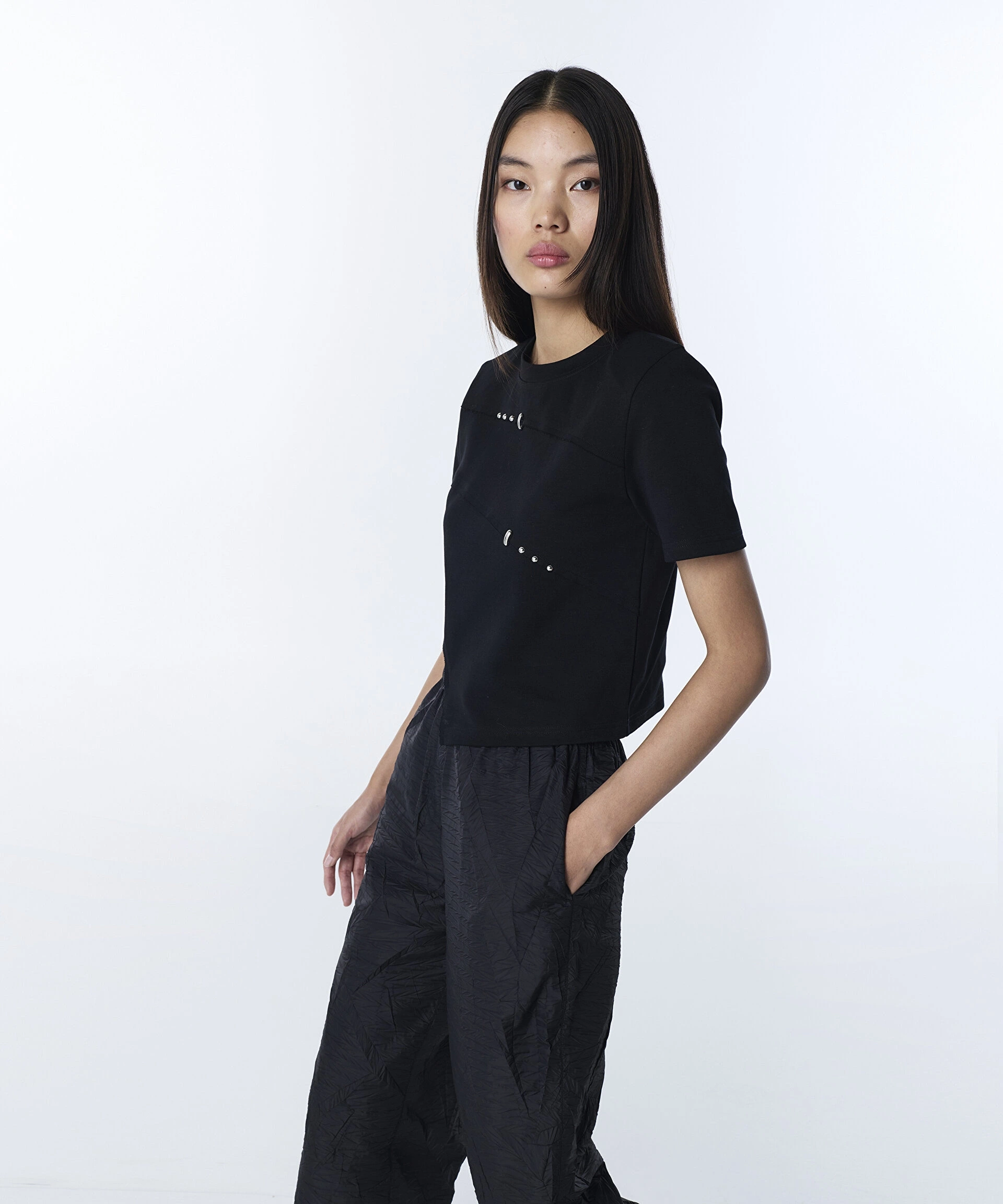 Twist Metal Aksesuarlı Asimetrik T-Shirt TS1260070090