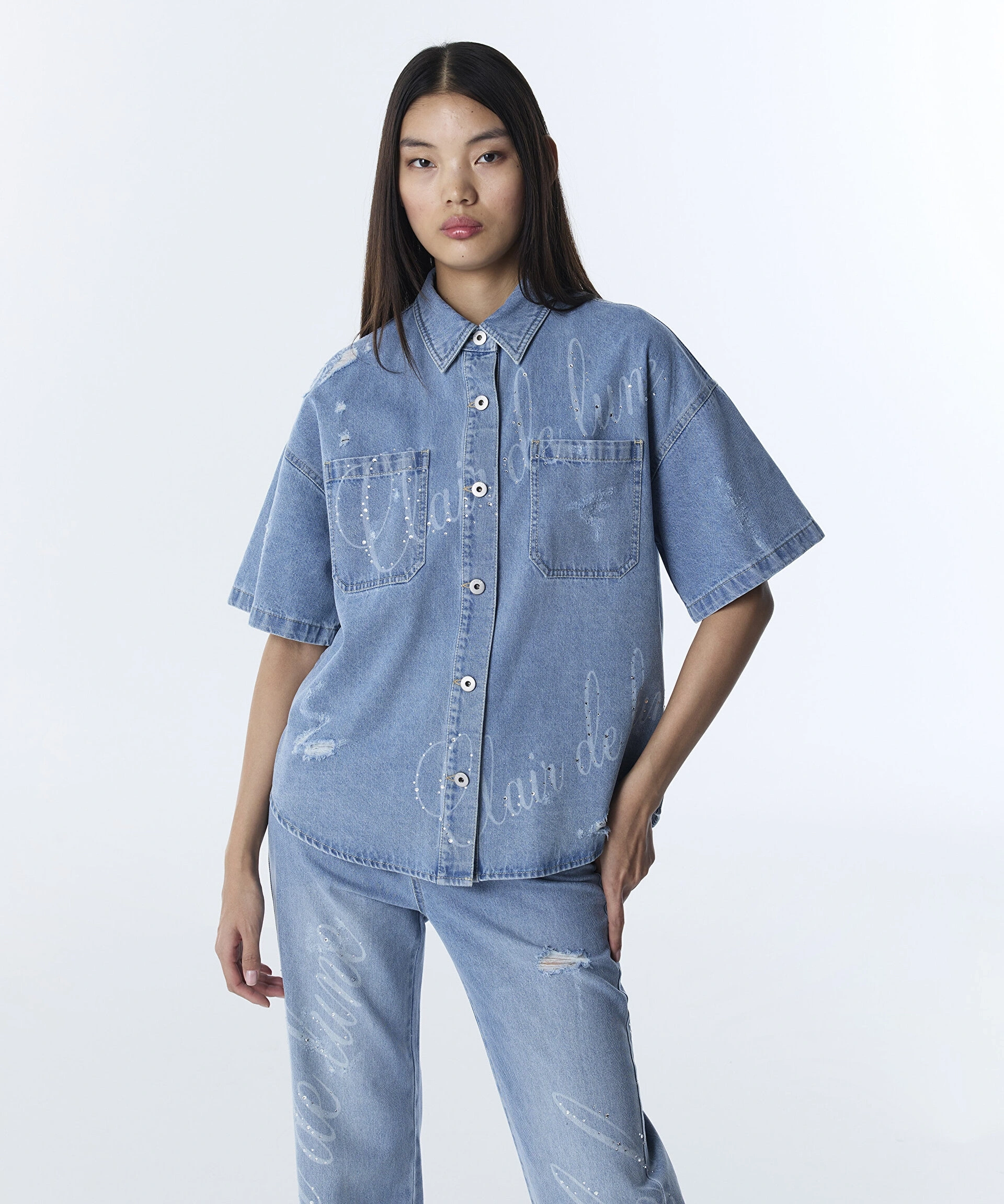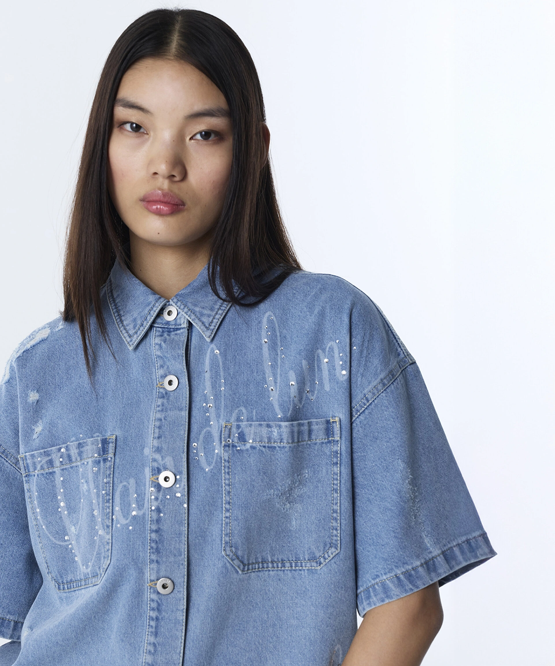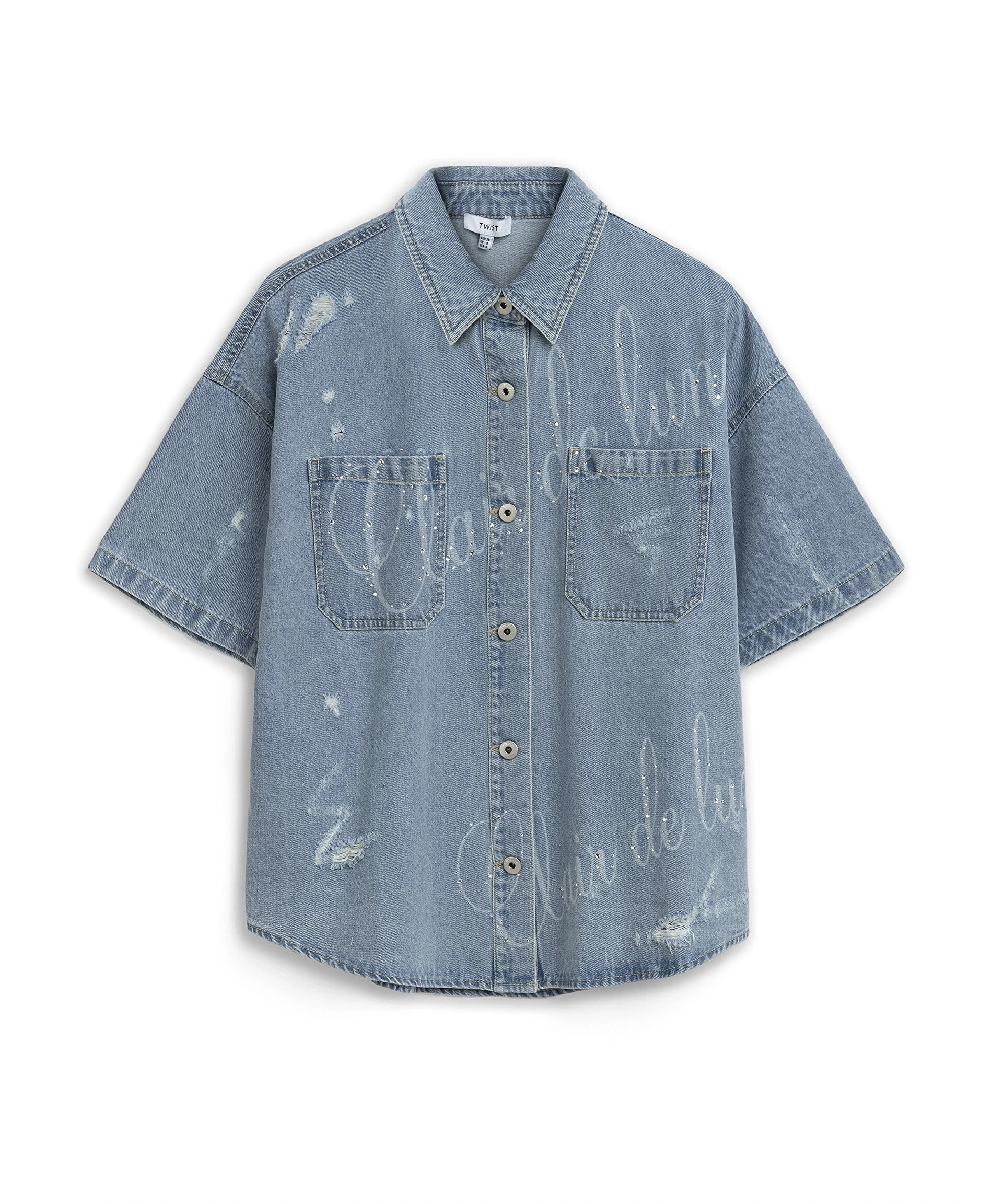 Twist Slogan ve Hotfix Baskılı Jean Gömlek TS1260025145