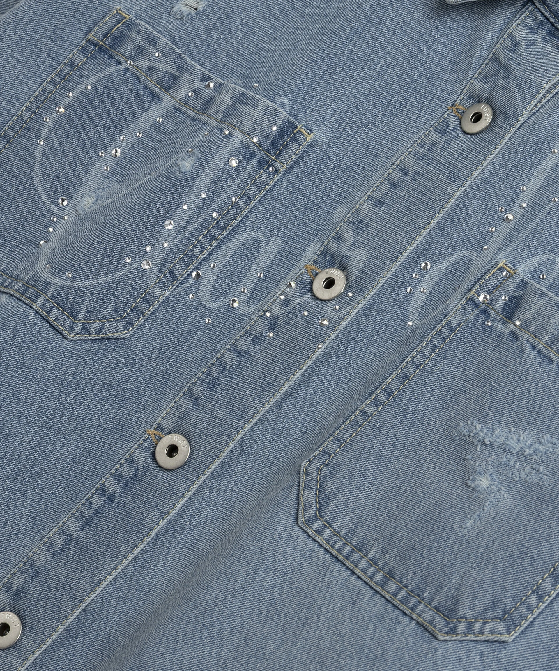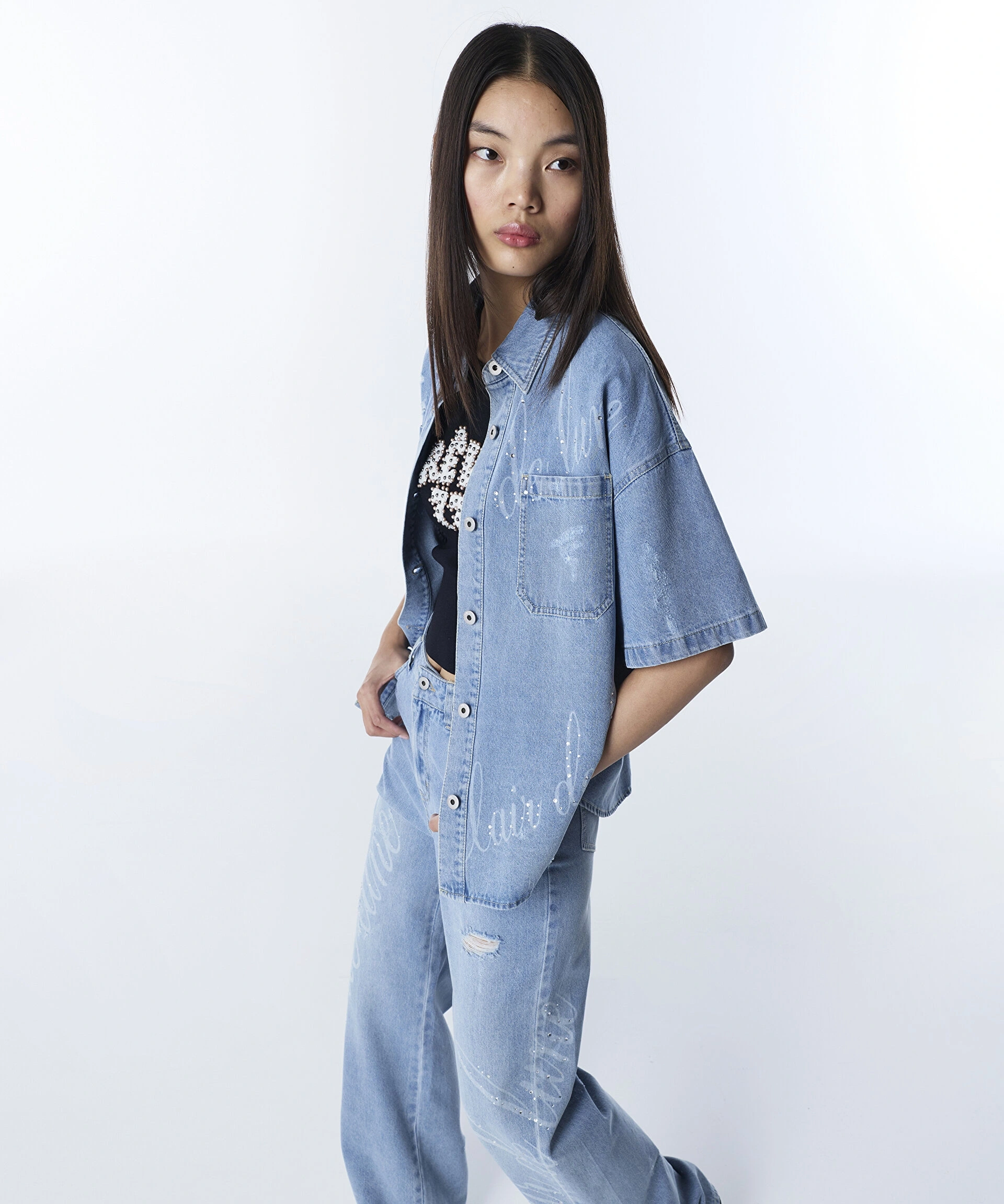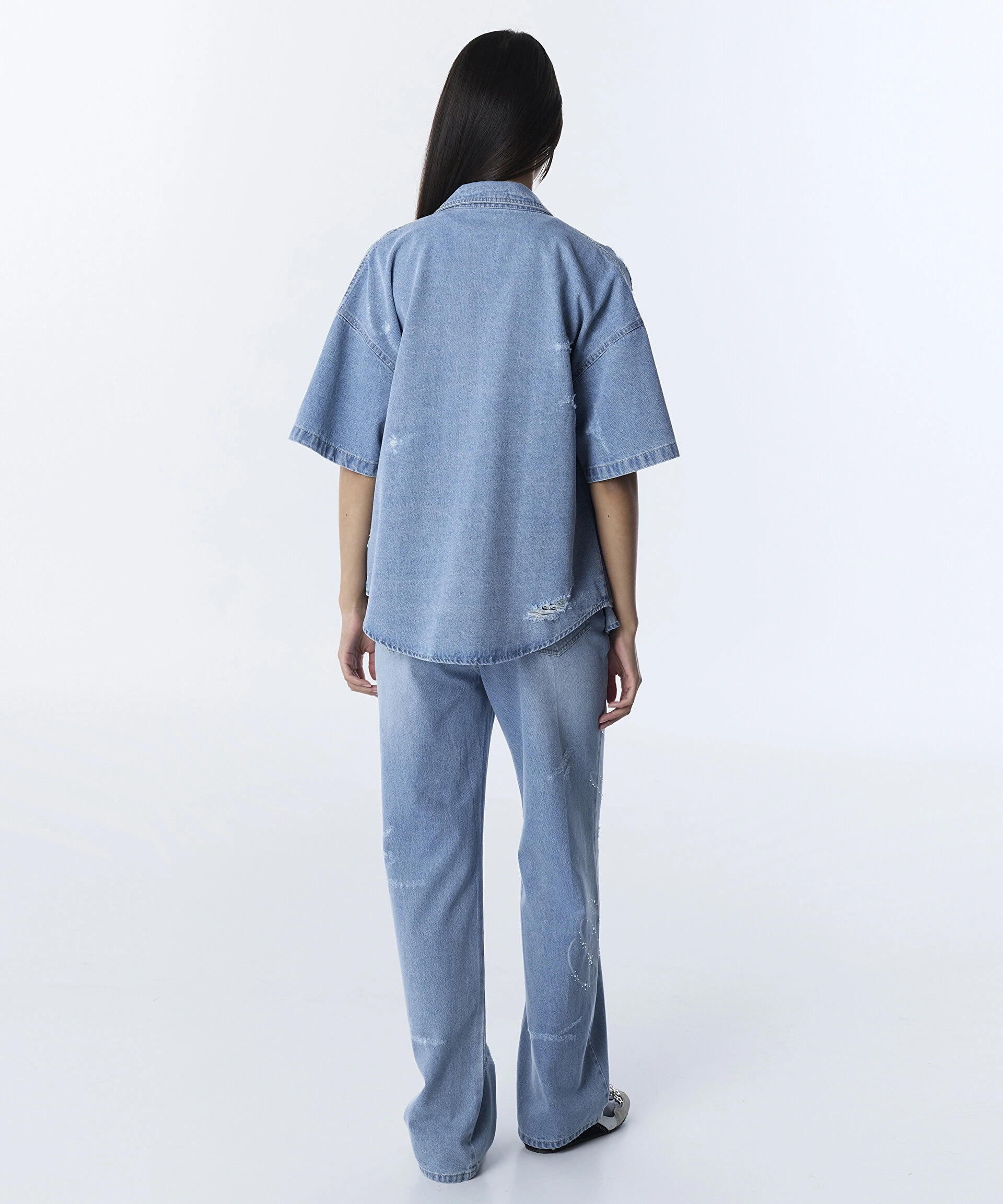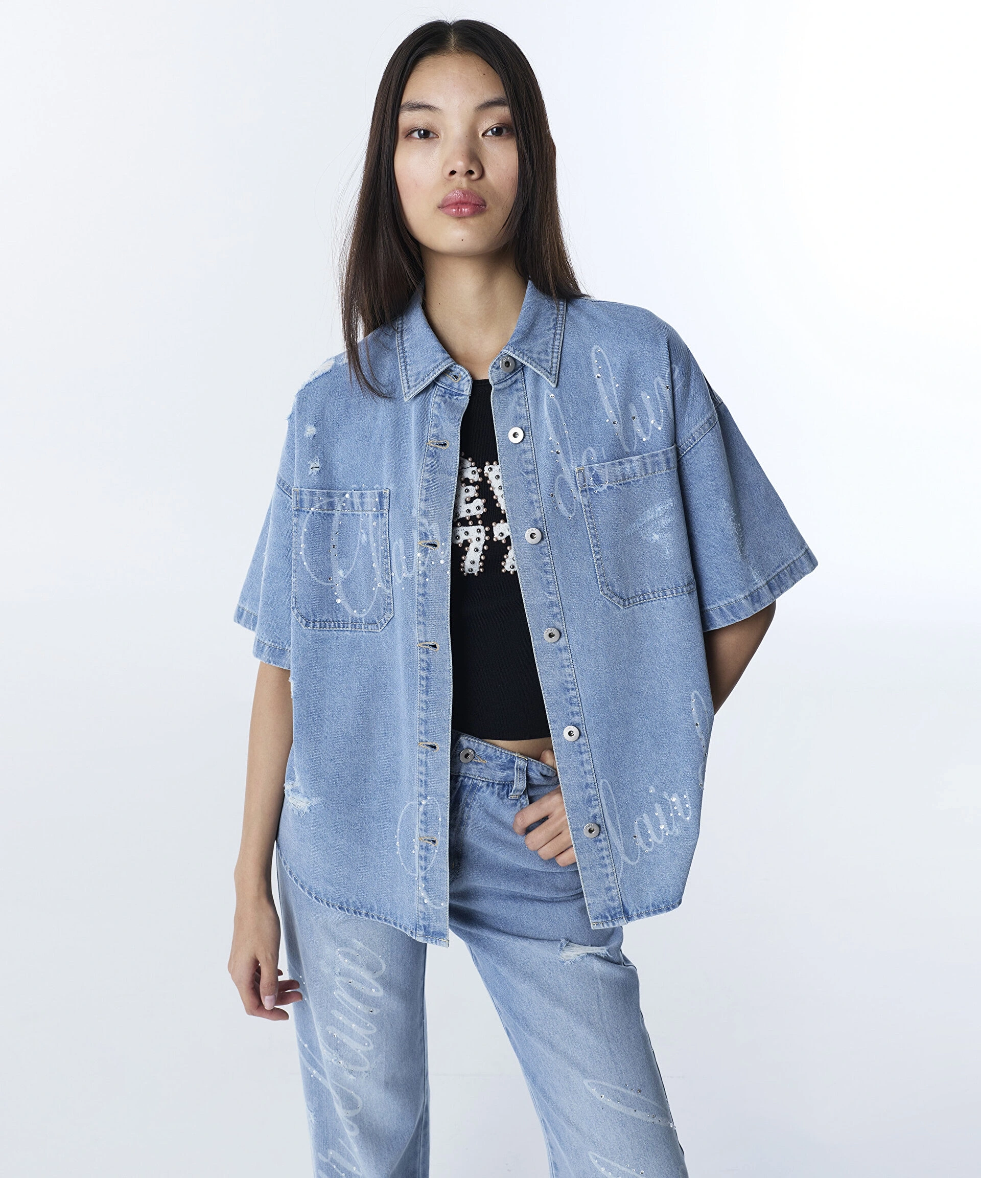 Twist Slogan ve Hotfix Baskılı Jean Gömlek TS1260025145