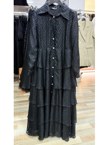 Twist Trok Baskılı Kadın Kemerli Siyah Elbise TW6250002152 – Modern ve Şık Tasarım